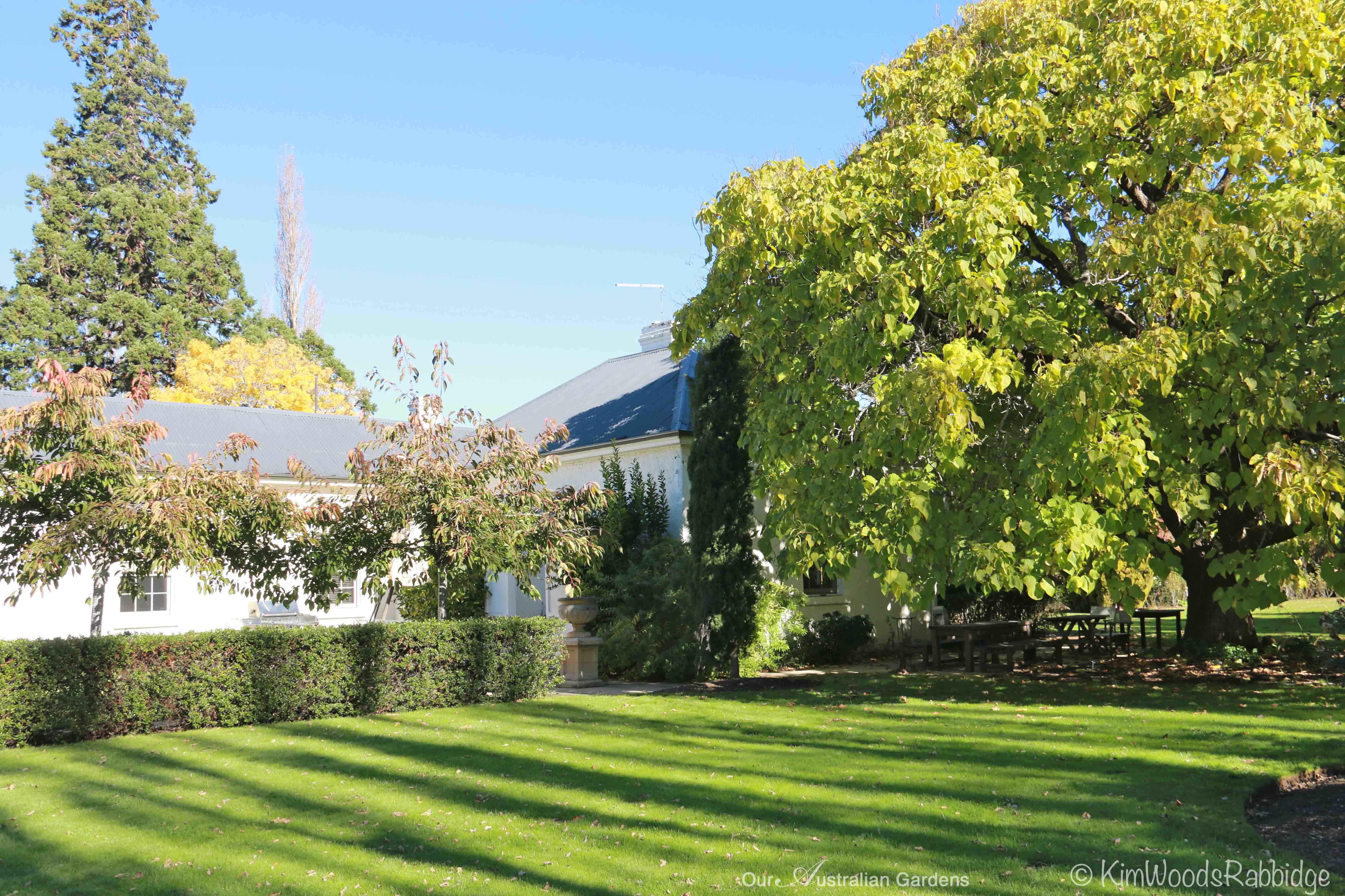 A quiet expanse of lawn, bordered by a hebe hedge and Mt Fuji cherries, Prunus ‘Shirotae’ Leave a comment Cancel reply Δ